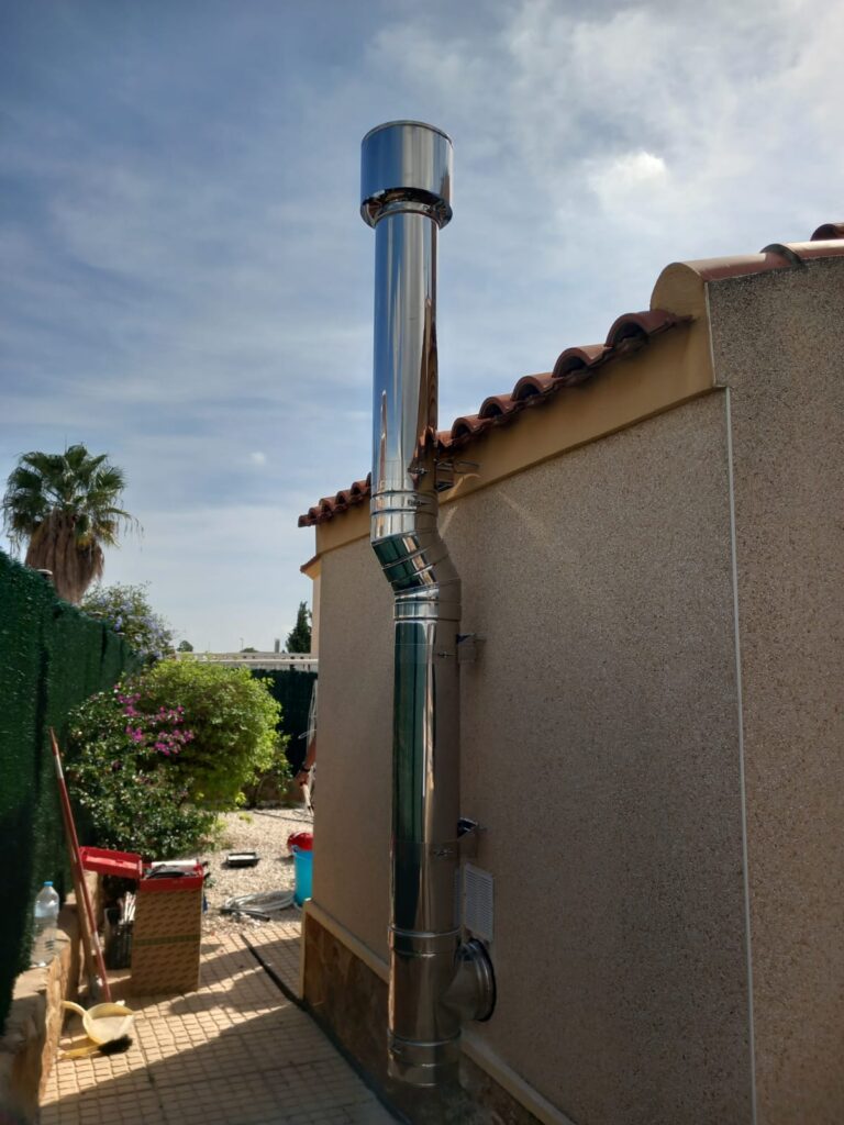 • Chimenea de evacuación de gases en acero inoxidable, instalada con las máximas garantías de seguridad y aislamiento.